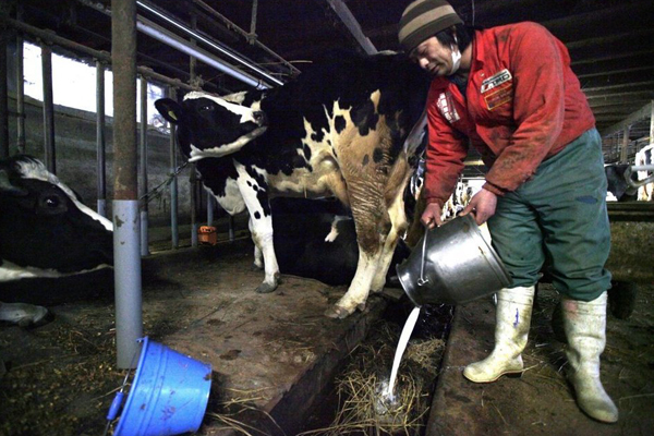 2011年3月23日,日本福島縣Kawamata,奶農(nóng)將剛擠的牛奶倒掉。