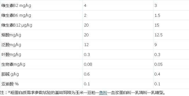 國內外在斷奶仔豬的維生素需要量方面研究的較少,一般認為NRC的標準基本能夠滿足斷奶仔豬的需要,但斷奶應激需要補充大量的維生素C和E來清除體內產生的大量自由基,防止過氧化損傷的發生,從而緩解仔豬的應激癥狀。