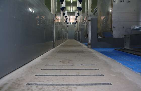 然而,仔豬的環(huán)境保持溫暖,它們才會(huì)茁壯成長(zhǎng) - 對(duì)于它們來(lái)說(shuō),除了一盞燈,分娩欄的內(nèi)側(cè)要安置加熱地板。這種非漏縫地板由里面的水加熱,水則由熱泵和空氣洗滌器后面的的換熱器加熱。