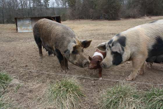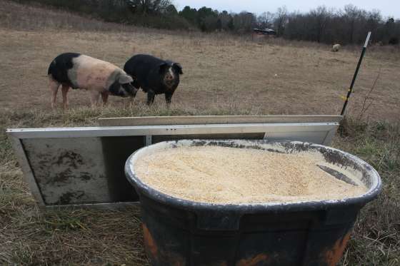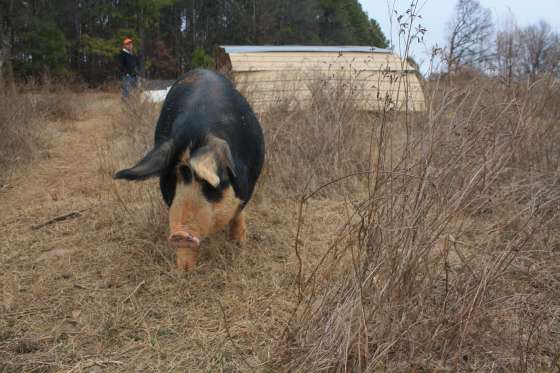 Once the pigs are between 250 and 300 pounds (113-136 kg), Anderson brings them to a slaugherhouse in Toccoa, Georgia by truck. He is at an average of 100 pigs/year. 一旦豬達到250-300磅(113-136公斤)之間,安德森就用卡車帶它們到喬治亞州托科阿的一個屠宰場。他平均1年生產100頭豬。