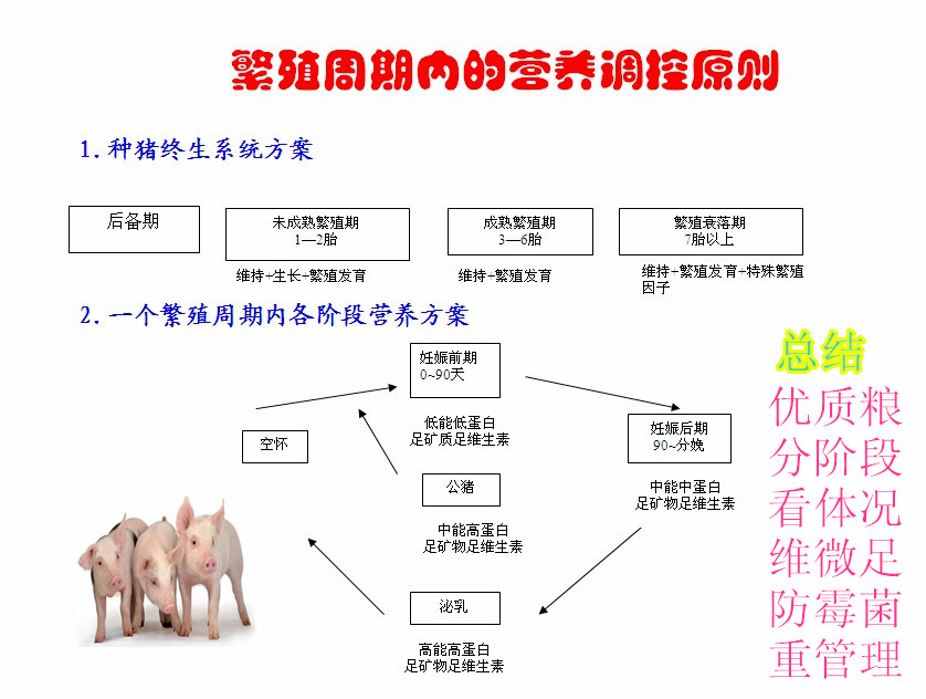 ,如果是2l天的哺乳期,假設分娩率超過90%,要達到甚至超過每頭母豬年產30頭斷奶仔豬的水平,則每頭母豬每年的空懷天數或非生產天數應該少于3O,窩產活仔數應該超過l4,斷奶前仔豬死亡率應該小于8%。對豬場員工來說,投資和努力最大的回報在于先使E降至最低,然后使M降至最低,并與商業育種專家、獸醫和營養學家共同合作使N達到最大。