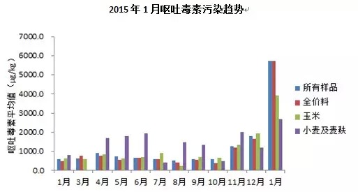2015年1月建明工業(yè)CLS檢測樣本數(shù)量和來源 飼料中霉菌毒素的限量標(biāo)準(zhǔn) 2015年1月黃曲霉毒素B1污染分布 分析:2015年1月建明CLS所檢測的各類樣品黃曲霉毒素B1污染較輕。 2015年1月黃曲霉毒素B1污染趨勢 分析:從歷史數(shù)據(jù)來看,今年1月份黃曲霉毒素B1污染較其它月份較輕。 2015年1月玉米赤霉烯酮污染分布 分析:2015年1月5份玉米副產(chǎn)品樣品中玉米赤霉烯酮污染極其嚴(yán)重,部分玉米樣品污染嚴(yán)重,全價(jià)料重度污染且平均值超標(biāo)。 2015年1月玉米赤霉烯酮污染趨勢 分析:建明CLS對比歷史數(shù)據(jù)來看,自從去年11月份以來,玉米赤霉烯酮依然保持著非常嚴(yán)重的污染程度,尤其是全價(jià)料平均值超標(biāo)令人堪憂。 2015年1月嘔吐毒素污染分布 分析:玉米副產(chǎn)品嘔吐毒素超標(biāo)嚴(yán)重,且玉米與小麥及麥麩類平均值也超標(biāo)(豬),所以全價(jià)料嘔吐毒素均值標(biāo)也就不足為奇了 分析:從歷史數(shù)據(jù)來看,進(jìn)入1月份,無論是玉米、小麥及麥麩等原料還是全價(jià)料,嘔吐毒素的污染狀況進(jìn)一步惡化了,平均值全面超標(biāo)嚴(yán)重。建明CLS團(tuán)隊(duì)提醒相關(guān)人員注意該趨勢。 2015年1月份建明CLS霉菌毒素檢測項(xiàng)目的總結(jié)與建議 自去年11月份以來,玉米赤霉烯酮和嘔吐毒素污染情況持續(xù)加重 玉米副產(chǎn)品和部分玉米中玉米赤霉烯酮污染嚴(yán)重,玉米副產(chǎn)品、玉米、小麥及麥麩嘔吐毒素污染嚴(yán)重 本月的4份粕類及其它樣品均為豆粕,三種霉菌毒素均污染輕微,且與以往的檢測結(jié)果一致,說明豆粕不易受到霉菌毒素的侵染 建議加強(qiáng)對玉米、玉米副產(chǎn)品、小麥及麥麩等原料的霉菌毒素監(jiān)測和原料采購時(shí)的品質(zhì)控制 酌情添加霉菌毒素吸附劑以降低其對動(dòng)物的危害,同時(shí)可提高養(yǎng)殖效果和飼料品質(zhì)。 建議加強(qiáng)對玉米、玉米副產(chǎn)品、小麥及麥麩等原料的霉菌毒素監(jiān)測和原料采購時(shí)的品質(zhì)控制本文來源于:建明工業(yè) |