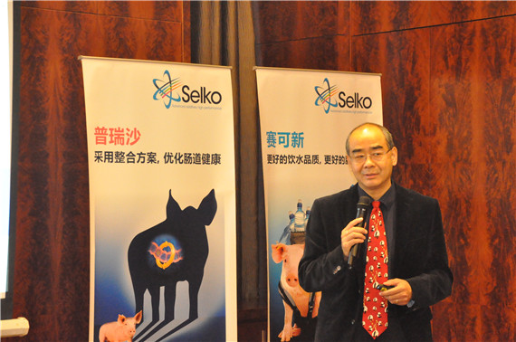 “養殖就是養腸道,健康養殖從維護動物腸道健康,讓動物健康生長”是我們廣大畜牧朋友共同的心愿。2015年11月13日上午,泰高集團賽爾可飼料添加劑新品發布會在美麗的星城---長沙融城花園酒店召開,來自業界同仁、合作伙伴、媒體朋友共同出席了新品發布會。畜牧人網站受邀參加了本次新品發布會。 此次新品發布為“普瑞沙”,是泰高集團賽爾可飼料添加劑部門在此前的賽可新和加強型肥酸寶產品的基礎上,又一次重磅推出的全新的腸道健康促進劑產品,為動物腸道保駕護航,減少抗生素的使用。“普瑞沙”(PresanTM)目前該產品已在中國成功注冊。 普瑞沙是由具有協同作用效果的幾種有效成分組成包括:酚類化合物(植物提取物)、緩釋型月桂酸、定點釋放的丁酸鹽、中鏈脂肪酸及有機酸。產品在穩定動物的腸道菌群、增強腸粘膜上皮完整性、強化腸粘膜屏障、提高飼料轉化率和動物生產性能、幫助動物維持良好健康狀況等方面有顯著功效。 會議伊始,泰高中國賽爾可(SELKO)飼料添加劑中國區總經理李明輝先生為會議致開幕詞。李總首先對出席此次新品發布會的各位業界同仁、合作伙伴以及媒體朋友表示熱烈的歡迎和衷心的感謝。隨后,李總詳細介紹了泰高集團的發展歷程以及未來的發展規劃與企業理念,特別是對賽爾可飼料添加劑部門在中國的市場布局方面做了詳細的介紹,賽爾可飼料添加劑部門今后將對中國的客戶做到既有產品,又有營養模式,還有實驗研究和現場服務的、完整的、系統的為客戶定制解決方案,從而全面支持幼豬和肉雞的健康與生產性能。 泰高集團全球飼料添加劑研發經理、首席科學家韓延明博士做了《保護動物腸道健康,提高動物生產性能》主題報告,韓博士詳細介紹了“普瑞沙”(PresanTM)產品有效成分的構成及其作用機理。普瑞沙它能有效提高動物的健康和生長性能,減少飼料中促生長抗生素和氧化鋅的使用量,是經歐洲市場實踐證明的抗生素高效替代品之一。韓博士在報告中還指出,飼料中抗生素的主要作用是預防并減少動物亞臨床狀態下的炎癥反應,肉雞飼料中的抗生素一旦停用,肉雞腸道內由產氣莢膜梭菌所導致的壞死性腸炎最容易爆發,而普瑞沙在抑制產氣莢膜梭菌增殖,維護腸道平衡和多樣性方面具有非常明顯的功效。 四川農業大學動物營養研究所張克英教授分享了“家禽腸道健康的重要性”主題報告,張教授指出衡量家禽腸道是否健康要從兩方面來看:一是腸道的結構和功能是否完整;二是腸道的微生態環境是否穩定。我們針對家禽營養的研究不能只研究動物自身生產的營養需要,也要研究如何才能維持腸道微生物平衡的營養需要。張教授隨后介紹了與泰高集團合作進行的普瑞沙替代抗生素硫酸粘桿菌素在肉雞上的試驗情況,結果表明,普瑞沙在肉雞飼料中替代硫酸粘桿菌素是完全可行的。 泰高集團獸醫學鄒運動博士的報告著重介紹了賽爾可飼料添加劑另一款飲水用酸化劑產品“賽可新”在豬場的應用情況,他從賽可新產品的特點、應用方法和客戶價值為與會者做了詳細而深刻的闡述。 莊宏經理 泰高集團賽爾可飼料添加劑家禽技術服務莊經理重點介紹了賽可新產品在家禽中的應用情況,添加賽可新前后通過對飲水的檢測結果表明,賽可新可以有效抑制水中有害菌的滋生,控制水源中的微生物,清潔動物飲用水。家禽在飲用添加了賽可新的水后,可有效促進動物消化,維護動物腸道的健康。 泰高集團動物營養始終堅信創新是幫助廣大客戶實現增長的唯一有效方式,此次上市的全新產品——腸道健康促進劑“普瑞沙”(PresanTM)必將為推動中國“飼料替抗和健康養殖”的發展提供強勁支持。我們將拭目以待賽爾可(SELKO)將世界先進的飼料添加劑帶入中國市場。