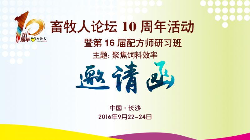 飼料總量供給過剩,企業的利潤幾乎消失殆盡,競爭正變得越來越激烈,生存的壓力越來越大。 市場集中度提升,養殖業倒逼飼料業產品升級,企業如何應對轉變? 飼料產業政策調整,以及產業環境的變化,造成從業門檻提高,飼料企業如何活下來? 產品,產品,還是產品! 您的產品能為客戶切實解決什么問題?能為客戶帶來多少價值和收益? 面對以上問題,飼料企業要生存,關鍵在于通過提升產品核心競爭力,以價值驅動銷售,做好價值營銷才是決勝市場的王道。 產品是銷售的核心,飼料效率是用戶對產品的評價標準。 面對以上的諸多機遇與挑戰,畜牧人整合多方資源,邀請飼料企業、養殖企業、飼料添加劑企業、飼料設備企業,從技術改良、配方優化、工藝提升、現場管理等角度,為您帶來第16屆飼料商業配方師研習班,繼續從實戰出發,聚焦飼料效率,就如何提高飼料效率,如何提高企業產品競爭力方面,展開研討和交流。 讓我們一起開創高效、安全、優質的現代飼料產業新局面! 一、組織單位 主辦: 畜牧人網站&畜牧人雜志 承辦:北京宏牧偉業網絡科技有限公司 協辦:福建深納生物工程有限公司 陜西金冠牧業有限公司 河南正本清源科技發展股份有限公司 上海牧冠企業發展有限公司 晚宴:內蒙古金河動物藥業有限公司 支持:哈爾濱普凡農牧有限公司 山東惠爾佳生物有限公司 浙江科峰生物技術有限公司 武威曦景農業科技有限公司 賽恩斯(北京)儀器有限公司 西安愛普安生物技術有限公司 湖南普菲克生物科技有限公司 上海金杰中盛生物科技有限公司 重慶天龍精細化工廠 億如科技(北京)有限公司 拜發分析系統銷售(北京)有限公司 廣州市正百飼料科技有限公司 北京菲迪飼料科技有限責任公司 烏魯木齊市康運達飼料有限公司 (宏璣酵母)武漢新宏璣生物科技有限公司 廣州豬個靚生物科技有限公司 茶歇贊助:上海邦成生物工程有限公司 禮品贊助:山東海能生物工程有限公司 三、時間和地點 時間:2016年9月22--24號,22號全天報到 地點:長沙萬家麗國際大酒店(長沙市芙蓉區萬家麗中路99號) 會議室地點:11層多功能廳 23日晚宴地點:9層宴會廳 四、會議日程安排
