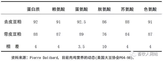 表二所列為美國“全國油料籽加工者協會”(National Oilseed Processors Association,簡稱NOPA)制訂的帶皮豆粕與去皮豆粕的質量標準。中國正在修定豆粕的質量標準,預計將增加去皮豆粕一項,并采用KOH蛋白溶解度作為評價豆粕加熱過度的指標。 表2 去皮豆粕與帶皮豆粕的質量標準(NOPA) *由買、賣雙方在進行交易時決定。 根據表2,去皮豆粕的平均蛋白含量為48%,但由于大豆本身的蛋白含量受品種和環境,特別是氣候的影響(例如美國中西部和西北部所產大豆的蛋白含量一般比南部所產大豆低),去皮豆粕的蛋白含量也相應地有所變化,NOPA規定去皮豆粕的蛋白含量標準由買賣雙方商定。這一原則也適用于粗纖維的含量標準。在2000年春以前的很長一段時間內,美國飼料周報雜志(Feedstuffs)將去皮豆粕按蛋白含量分為a(48%),b(47.5%),c(46.5%)三個等級。除大豆本身的蛋白含量以外,豆粕蛋白含量還與去皮程度、豆皮蛋白含量、出油率、大豆及豆粕水分含量有關。筆者提出,上述關系可用以下公式表達: SBMcp=(Bcp-DHd×Hcp%)100/[(100-Oextr-DHd)- (Bm-Mm(100-Oextr-DHd)] 式中:SBMcp=豆粕蛋白含量 Bcp=除雜后的大豆蛋白含量 DHd=去皮程度(占大豆百分數) Hcp=豆皮蛋白含量 Oextr=出油率 Bm=大豆含水量 Mm=豆粕含水量 以上公式可用于大豆去皮浸出加工的相關產品指標的控制。由于各有關因素尤其是大豆本身的蛋白含量的差異導致的豆粕蛋白含量的差異,有時會使人難以用蛋白含量來絕對區分去皮豆粕和帶皮豆粕。例如,印度帶皮豆粕蛋白含量可高達46%以上,而產于北方冷涼地區的去皮豆粕的蛋白含量有可能不超過47%。二者盡管蛋白含量接近,代謝能含量卻相差很大,而且由于加工工藝和質量控制水平不同,氨基酸特別是賴氨酸的有效性也會有很大不同。用粗纖維含量的差異來區分兩種豆粕似更為妥當,可惜的是粗纖維分析不僅手續繁雜,分析本身的相對誤差也較大。 從動物營養角度來看,除蛋白質以外,代謝能、必需氨基酸特別是賴氨酸和蛋氨酸(第一與第二限制氨基酸)的含量是重要的指標。表3是美國國家研究委員會(NRC)發表的去皮豆粕與帶皮豆粕的主要營養指標以及據此計算出去皮豆粕與帶皮豆粕單個營養指標的比例關系。以上資料中并未包括蛋白質、氨基酸的消化率或可利用率。根據羅納普朗克動物營養公司(Rhone-Poulenc Animal Nutrition)的資料,去皮豆粕的蛋白質、賴氨酸及其他幾種主要氨基酸的真消化率均明顯高于帶皮豆粕(表4)。 表3 去皮豆粕與帶皮豆粕的主要營養指標(NRC) 表4 去皮豆粕與帶皮豆粕的蛋白質與氨基酸的真消化率(%) 作者:熊易強 來源:畜牧人論壇 |