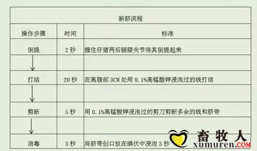 仔豬生出后,應停留2分鐘-10分鐘再進行斷臍,左手指捏緊要斷臍處(離仔豬腹部5厘米左右,小豬日常活動不能接觸到地面),右手握臍帶末端朝一個方向扭,慢慢將臍帶扭斷?;虼さ煤芫o時,用線結扎牢固后,在扎線 ...