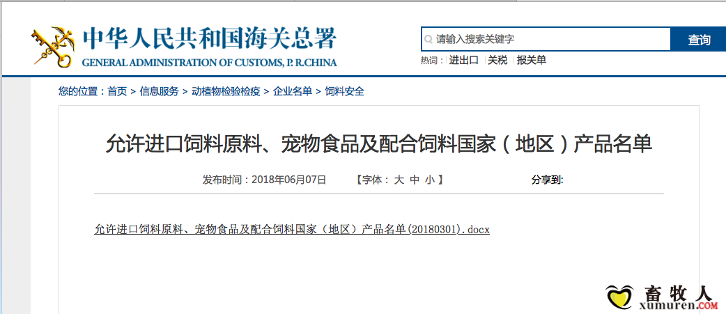 正文摘要:海關總署于2018年6月7日公布了允許進口飼料原料、寵物食品及配合飼料國家(地區(qū))產品名單 此次名單與3月1日的名單,并沒有什么太大變化!此次公布只是進一步強調了,后期進口飼料和飼料添加劑的市場準 ... |