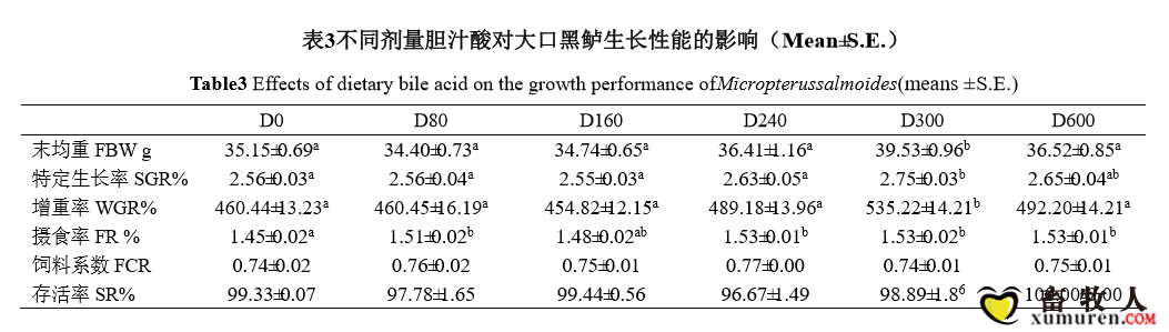一、試驗目的和要求:本研究依據《飼料原料和飼料添加劑水產靶動物有效性評價試驗指南》,經過70天飼養試驗,研究膽汁酸對大口黑鱸(加州鱸)的生長性能、血漿脂肪代謝指標、抗氧化能力、腸道消化酶活性及膽酸含量、 ...