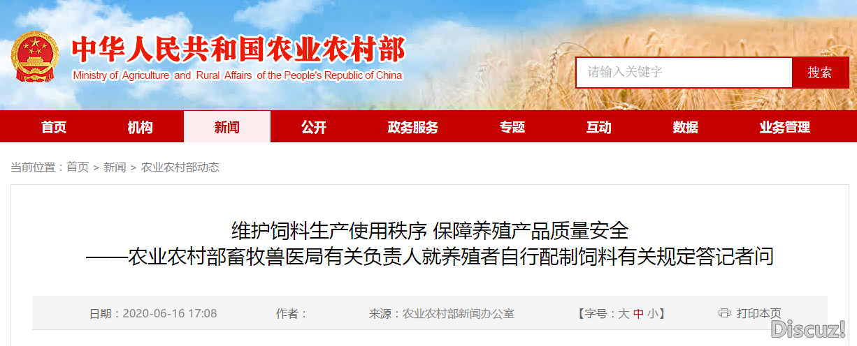本網訊 6月12日,農業農村部發布第307號公告,就養殖者自行配制飼料明確了九條底線規定。農業農村部畜牧獸醫局有關負責人日前接受記者采訪,就規定出臺的背景、重點內容和實施要求進行解讀。 問:為 ...