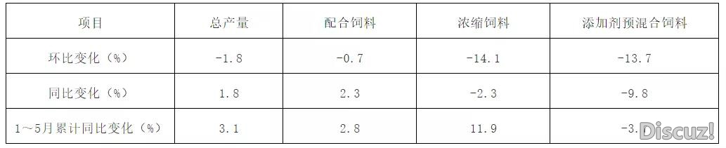 正文摘要:一、生產(chǎn)情況 截至6月5日,按照飼料企業(yè)上報(bào)數(shù)據(jù),根據(jù)上月相同企業(yè)在全國總產(chǎn)量中占比測(cè)算,2020年5月,飼料總產(chǎn)量同比增長(zhǎng)1.8%,環(huán)比下降1.8%。各品種飼料同比呈現(xiàn)“三增兩降”,豬飼料、水產(chǎn)飼料同比分別下降14. ... |