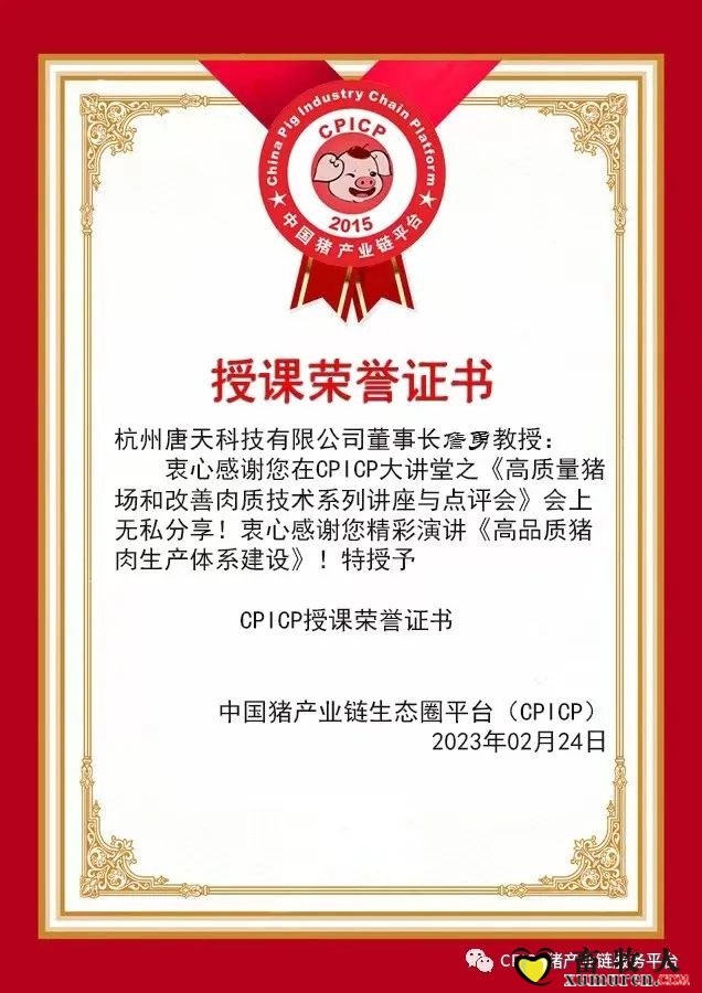 今天是我們《高質量豬場和改善肉質技術》系列講座和點評會的第6場!高質量豬場和改善肉質是我們全行業關注的熱門話題!今天我們有幸邀請到了浙江大學詹勇教授,杭州唐天科技有限公司詹勇董事長來參加這場公益講座, ...