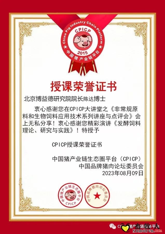 今晚是我們《非常規原料和生物飼料應用技術系列講座和點評會》的第9場公益講座,非常規原料和生物飼料應用技術是我們全行業關注的熱門話題!今天我們有幸邀請到了北京博益德集團研究院院長陳達博士來參加這場公益講 ...