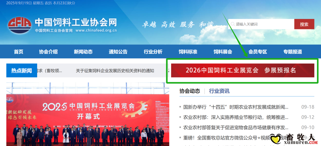 2026中國飼料工業展覽會 火熱報名中! 展會時間 2026年4月18—20日 展會地點 南昌綠地國際博覽中心 (江西省南昌市紅谷灘區懷玉山大道1315號) 報名時間 2025年9月9日至2026年2月28日 報名通道 中國飼料工 ...