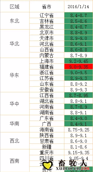 正文摘要:圖片來源:豬天下網(wǎng) 據(jù)慧通數(shù)據(jù)研究部數(shù)據(jù)統(tǒng)計,2016年1月14日全國各省外三元豬均價為18.00元/千克,較昨日下跌0.09元/千克,較上周同期豬價(1月7日) 上漲0.72元/千克。 今日全國27省、直轄市范圍內(nèi) ... |