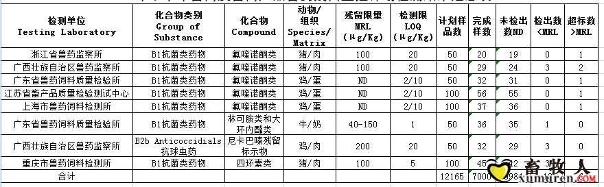 農業部辦公廳關于2015年下半年畜禽及蜂產品獸藥殘留監控計劃檢測結果的通報 各省、自治區、直轄市畜牧獸醫(農牧、農業)廳(局、委、辦),新疆生產建設兵團畜牧獸醫局: 根據《獸藥管理條例》規定 ...