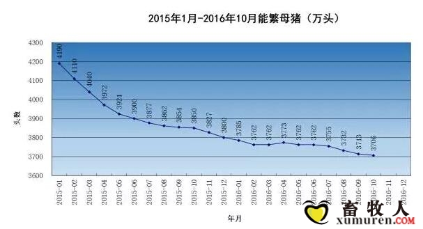 正文摘要:據(jù)農(nóng)業(yè)部最新數(shù)據(jù)《2016年10月份4000個監(jiān)測點生豬存欄信息》報告,能繁母豬存欄環(huán)比連續(xù)第4個月微幅下降,幅度為0.2%,同比減少3.9%。生豬存欄環(huán)比持平,同比減少3.4%。估算能繁母豬存欄為3706萬頭,生豬存欄 ... |