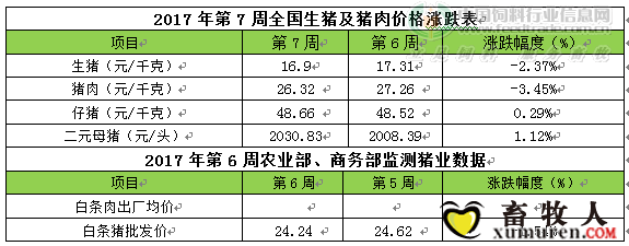 本周生豬價格為16.90元/千克,較上周下跌2.37%;豬肉價格為26.32元/千克,下跌3.45%;仔豬價格為48.66元/千克,較上周上漲0.29%;二元母豬價格為2030.83元/頭,上漲1.12%。 農業部監測數據顯示,2月第2周全國 ...