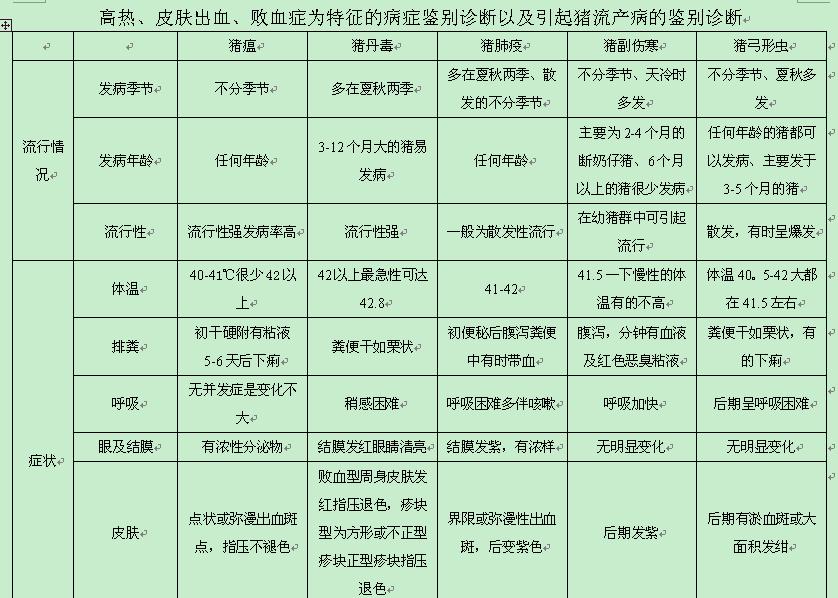 下載地址:高熱、皮膚出血、敗血癥為特征的病癥鑒別診斷以及引起豬流產病的鑒別診斷