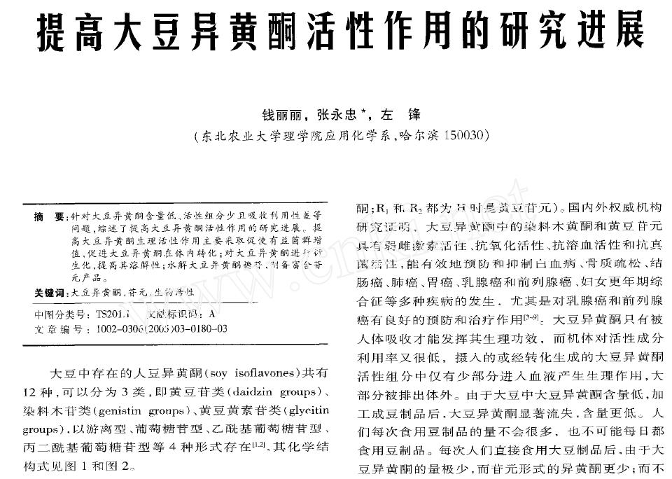 內容介紹:提高大豆異黃酮活性作用的研究進展