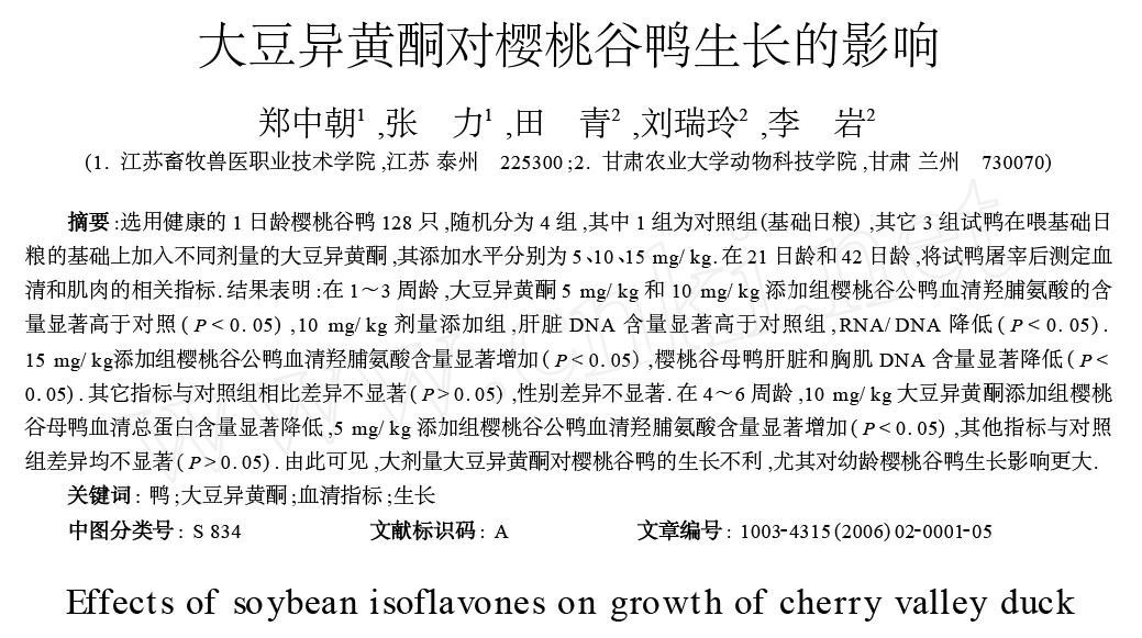 下載地址:大豆異黃酮對櫻桃谷鴨生長的影響
