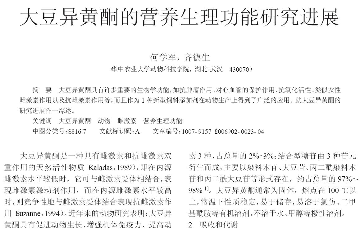 內容介紹:大豆異黃酮的營養生理功能研究進展