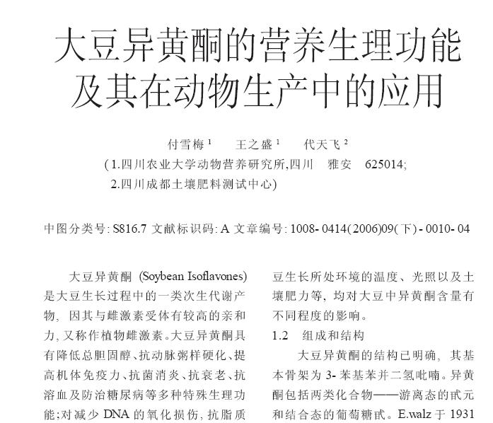 大豆異黃酮的營養(yǎng)生理功能及其在動(dòng)物生產(chǎn)中的應(yīng)用 |