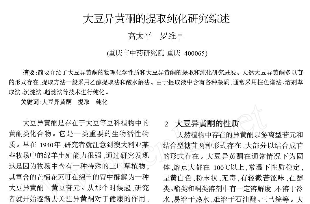 大豆異黃酮的提取純化研究綜述 |