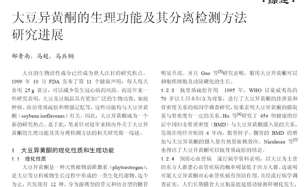 內容介紹:大豆異黃酮的生理功能及其分離檢測方法研究進展