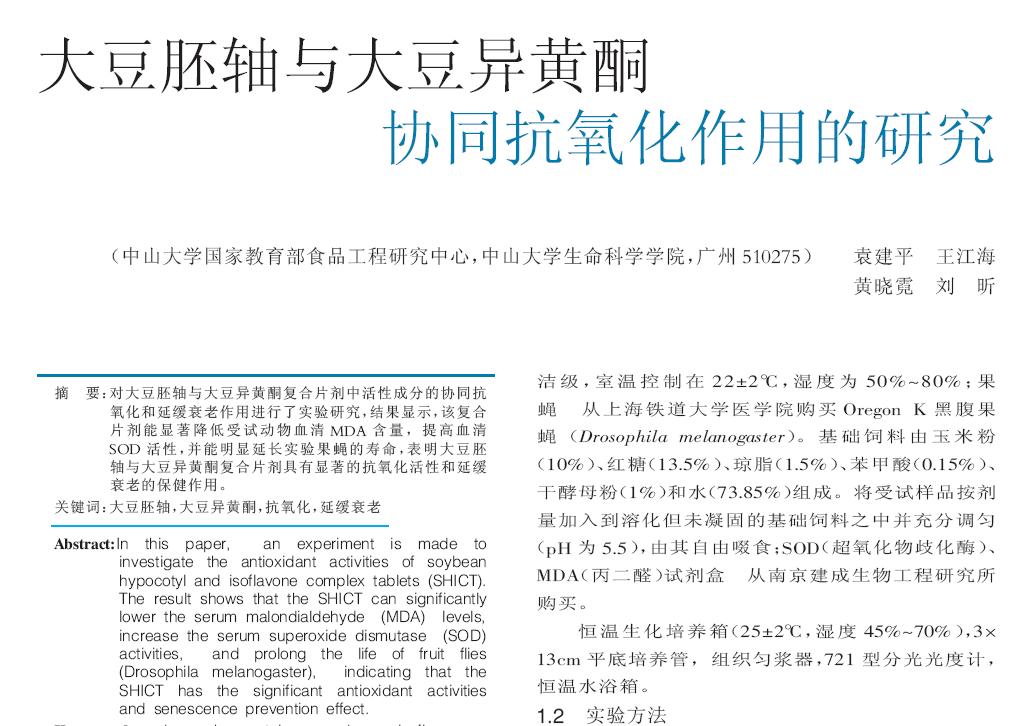 內容介紹:大豆胚軸與大豆異黃酮協同抗氧化作用的研究