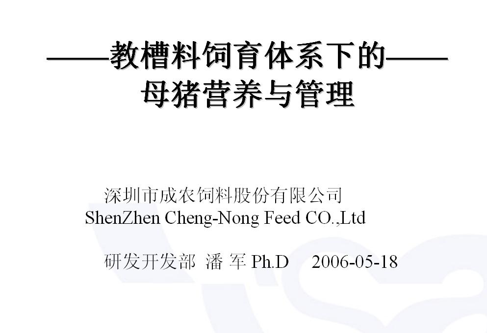 教槽料飼育體系下的母豬營養(yǎng)管理(潘軍) |