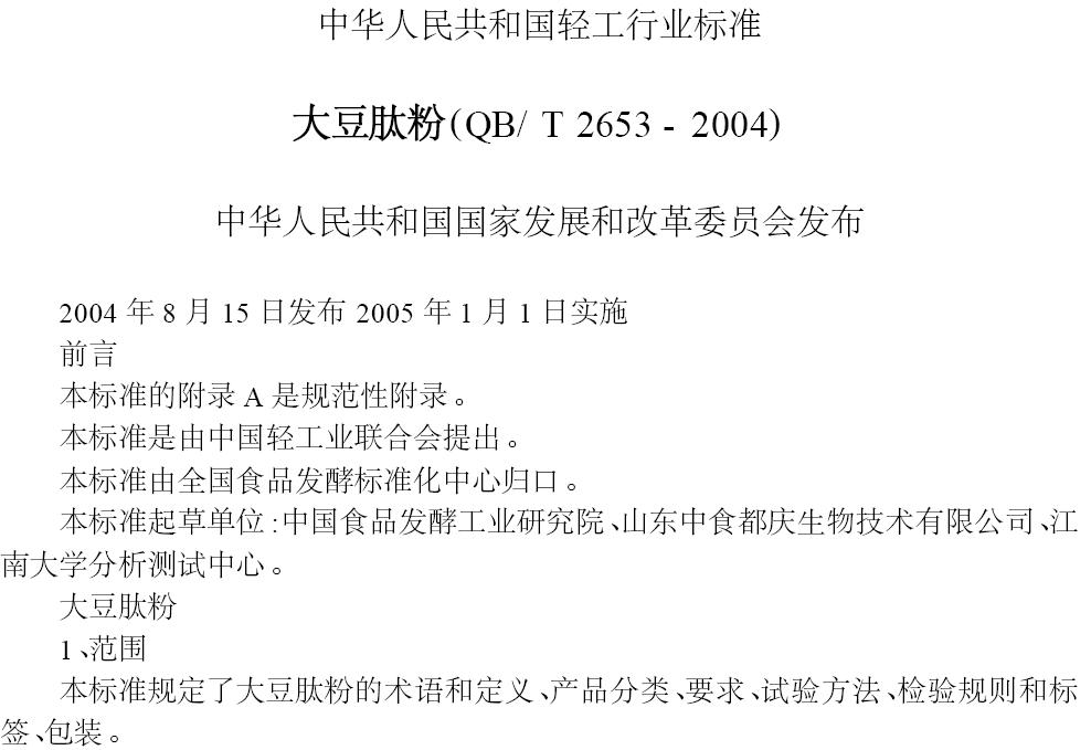 內容介紹:大豆肽粉標準QB/T2653-2004