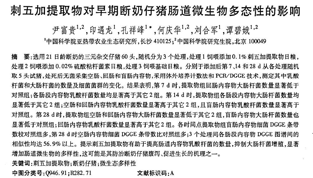 下載地址:刺五加提取物對早期斷奶仔豬腸道微生物多態性的影響
