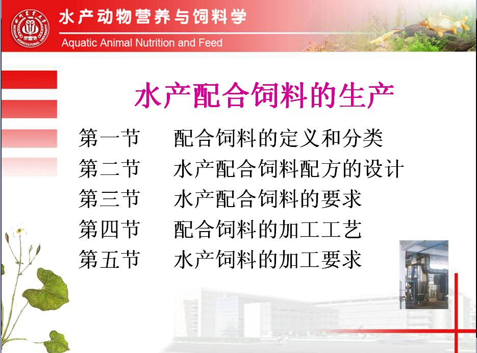 內容介紹:本資料對水產配合飼料的原料選用和加工以及關鍵點都進行了具體的講解,是學習水產營養及飼料的經典級資料