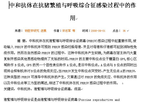 中和抗體在抗豬繁殖與呼吸綜合征感染過(guò)程中的作用 |