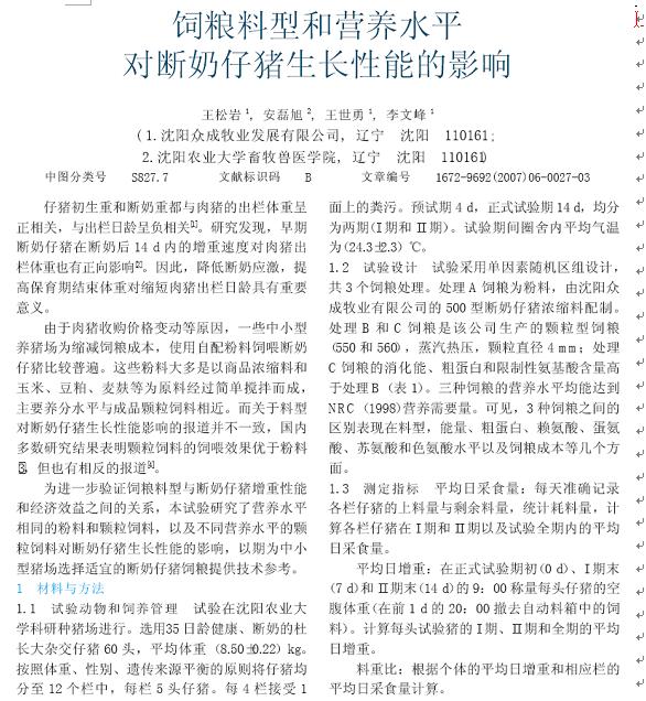 下載地址:飼糧料型和營養水平對斷奶仔豬生長性能的影響