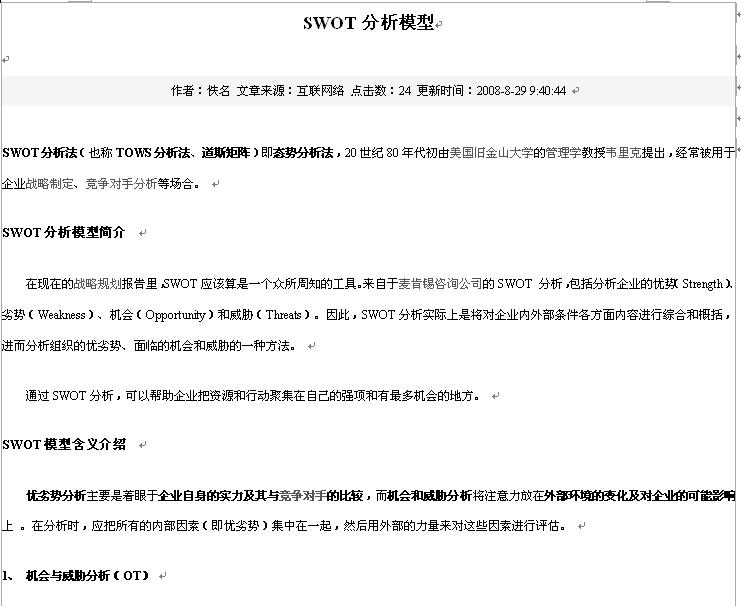 下載地址:SWOT分析模型