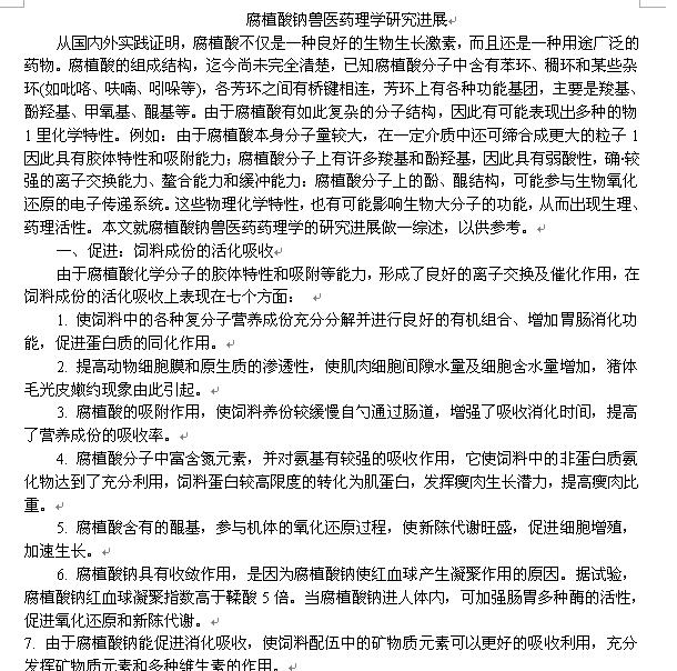 腐植酸鈉獸醫(yī)藥理學研究進展 |