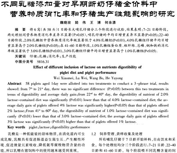 內容介紹:不同乳糖添加對斷奶仔豬消化及生長性能影響.doc