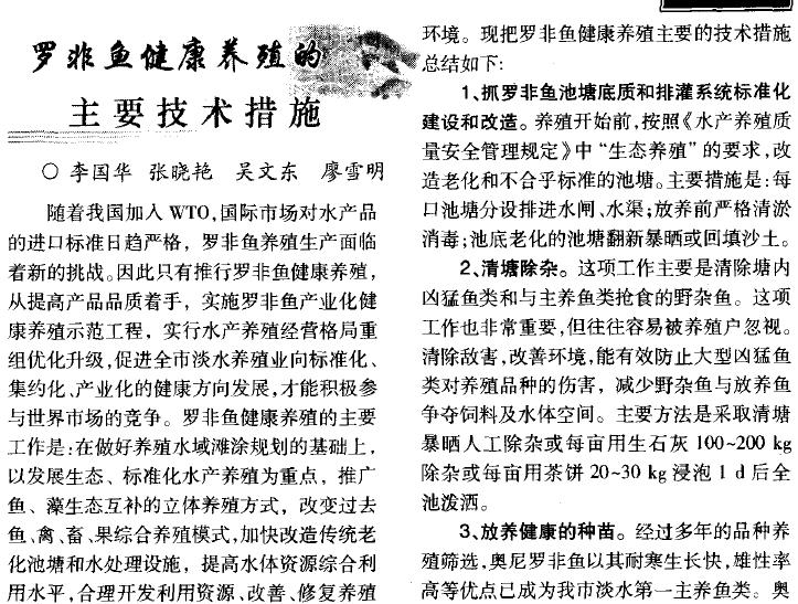 羅非魚系列 羅非魚健康養殖的主要技術措施