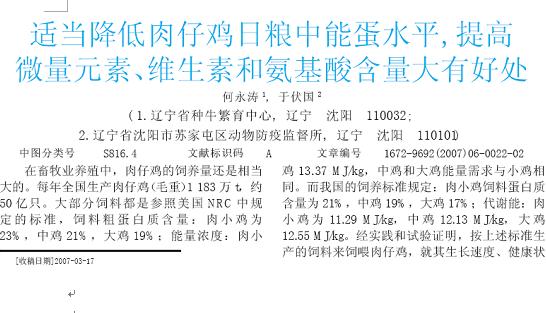 下載地址:適當降低肉仔雞日糧能蛋水平、提高維生素、微量元素和氨基酸含量大有好處