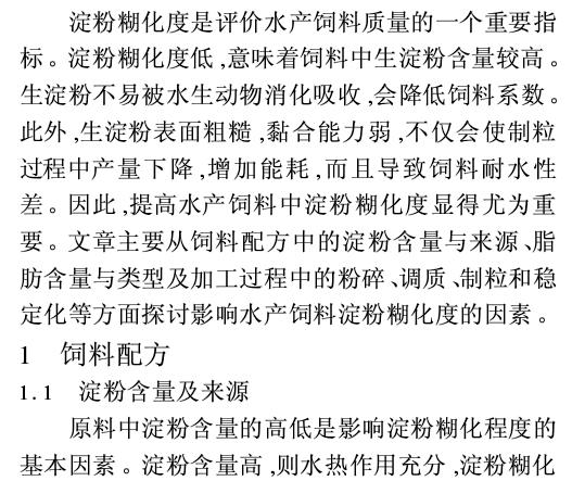 內容介紹:淀粉糊化度影響水產飼料的消化性和水中穩定性。如何提高淀粉糊化度是飼料生 產廠家和飼料研究者所關心的問題。文章主要從飼料配方和加工工藝條件方面探討影響水產飼 料淀粉糊化度的因素。
