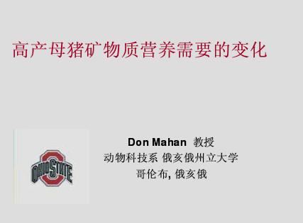 內容介紹:高產母豬礦物質營養需要的變化。美國俄亥俄州立大學動物科技系Don Mahan教授在中國的講座PPT!