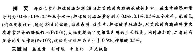 不同檸檬酸、益生素水平對(duì)肉雞料重比的影響 |
