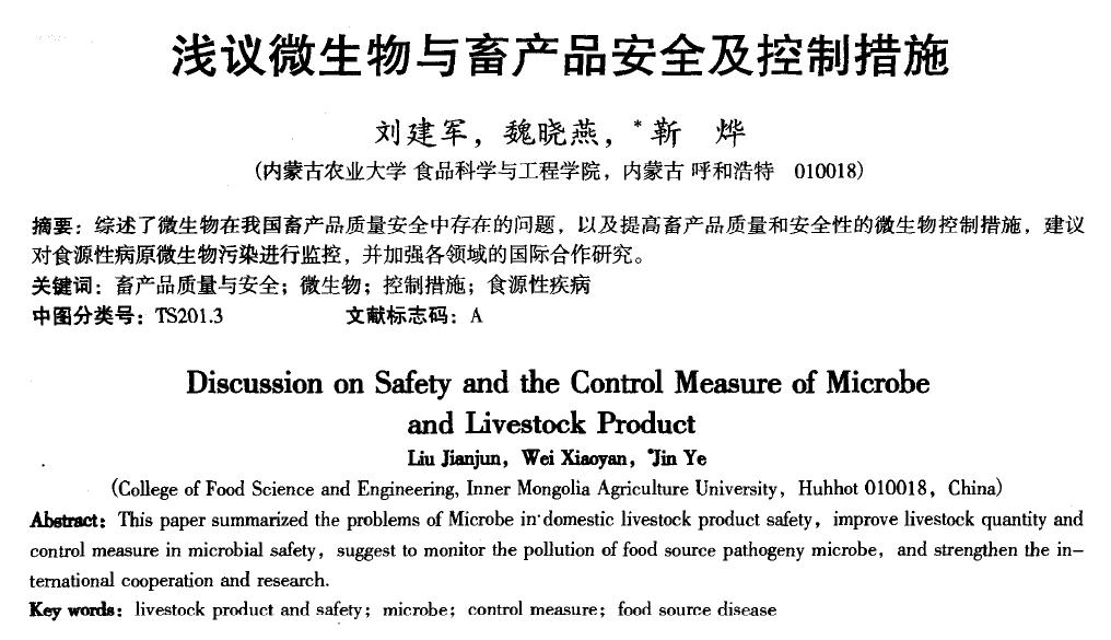 下載地址:淺議微生物與畜產品安全及控制措施.
