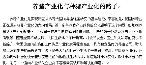 內容介紹: 養豬產業化是實現我國從養豬大國向養豬強國轉變的基本途徑,幸喜的是,我國養豬業正在逐步朝著產業化的方向發展,近十多年養豬產業結構的變化說明了這個問題,如規模養豬場(戶)逐漸增多,“公司+農戶”的模式不斷得到推廣,產加銷一條龍經營的企業不斷涌現等。隨著經濟不斷發展,人民生活水平不斷提高,對食品安全、衛生和風味等的要求不斷提升,我國的豬肉市場的主體將是產業化發展程度高的,具有獨立品牌的養豬公司、豬肉加工公司生產的品牌豬肉,這不僅是因為人們經濟生活水平得到了提高,健康意識增強,還因為現代社會的快節奏改變著人們的購物及生活方式,順應這種市場變化,抓住市場新的商機,是每一個豬肉產業相關企業刻不容緩需要認識和解決的問題。下載地址: 養豬產業化