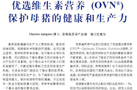 帝斯曼豬的優選維生素營養(OVN)-2004版