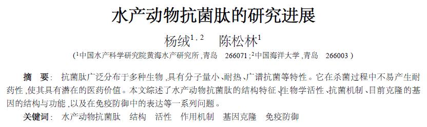 水產(chǎn)動物抗菌肽的研究進(jìn)展 |