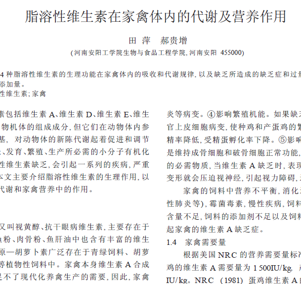 內容介紹:脂溶性維生素在家禽體內的代謝及營養作用;脂溶性維生素間的互作;禽用維生素飼料添加劑;禽用礦物質飼料添加劑