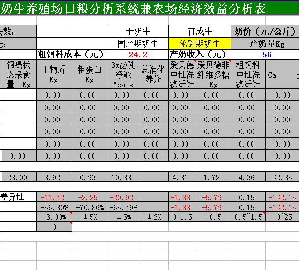 奶牛養(yǎng)殖場日糧分析系統(tǒng)兼農(nóng)場經(jīng)濟(jì)效益分析表 |