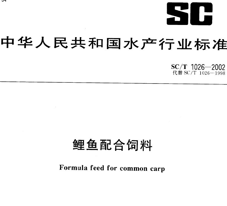 鯉魚配合飼料標準(SC/T1026-2002) |